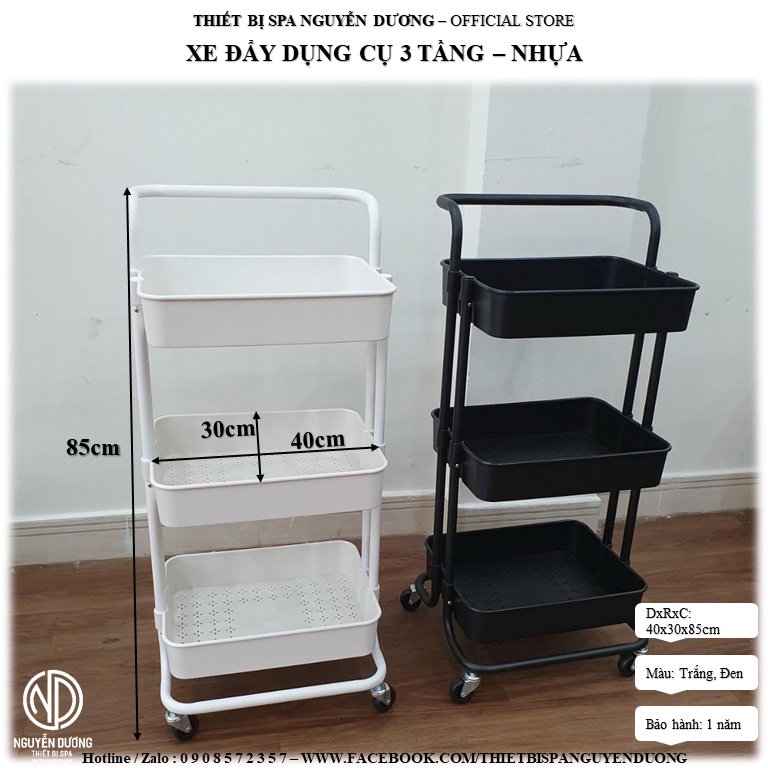 Giới thiệu Xe Đẩy (Kệ) 3 Tầng Dùng Trong Spa, Phun Xăm Thẩm Mỹ, Tóc, Nối Mi - Nhựa ABS