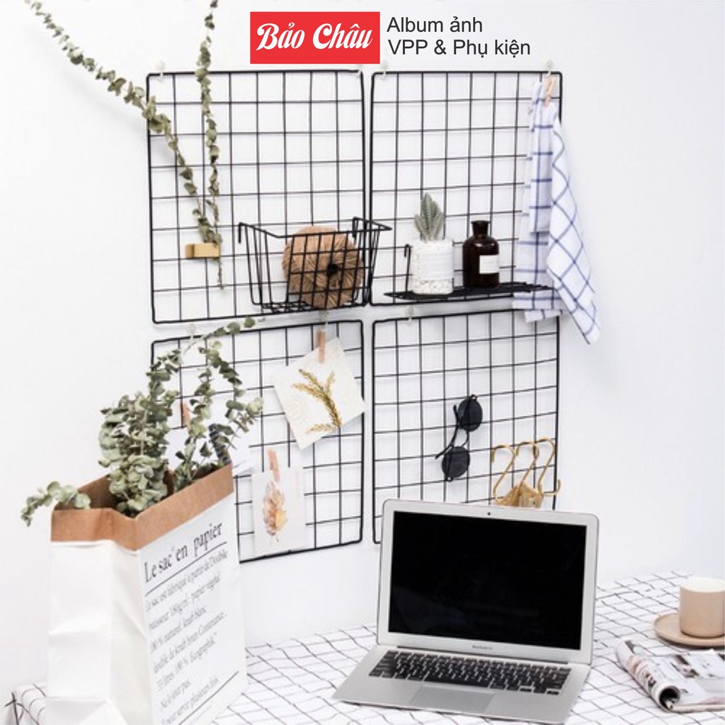 Chất liệu : lưới sắt sơn tĩnh điện , chịu được nước, không gỉ sét, dùng bền lâu, treo được đồ nặng- Lưới cỡ 35x35cm