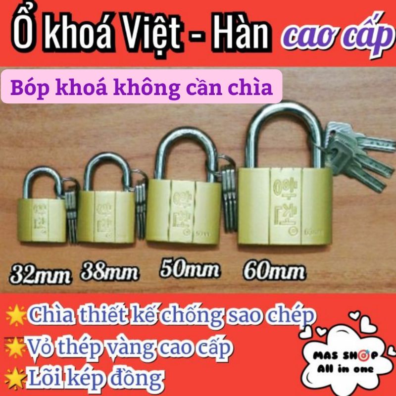 Ổ khoá bóp chìa muỗng Hàn Quốc cao cấp 32mm, 38mm, 50mm, 63mm