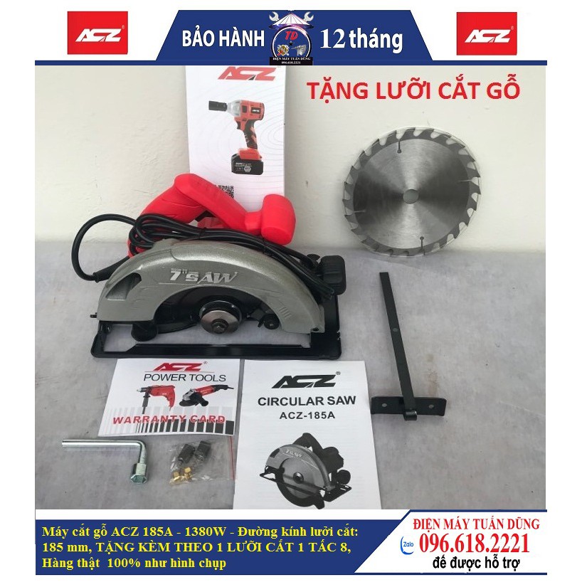 Máy cắt gỗ cầm tay ACZ 185A - Tặng kèm lưỡi cắt gỗ 1 tấc 8 - Lõi đồng 100%