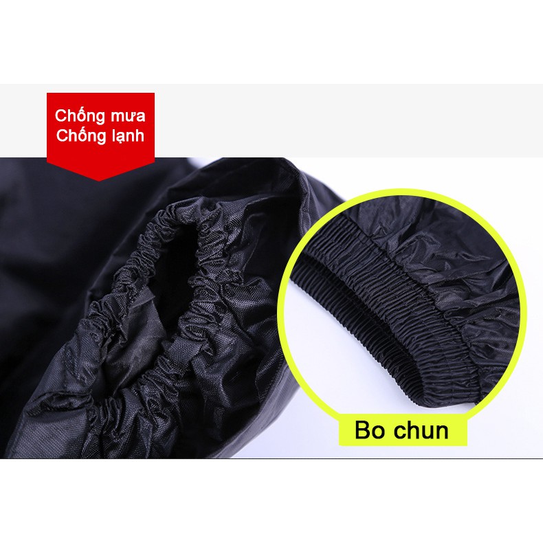 Bộ gồm Áo, Quần, Mũ và có thêm một dải phản quang ở mặt lưng giúp tăng độ an toàn khi di chuyển trong đêm