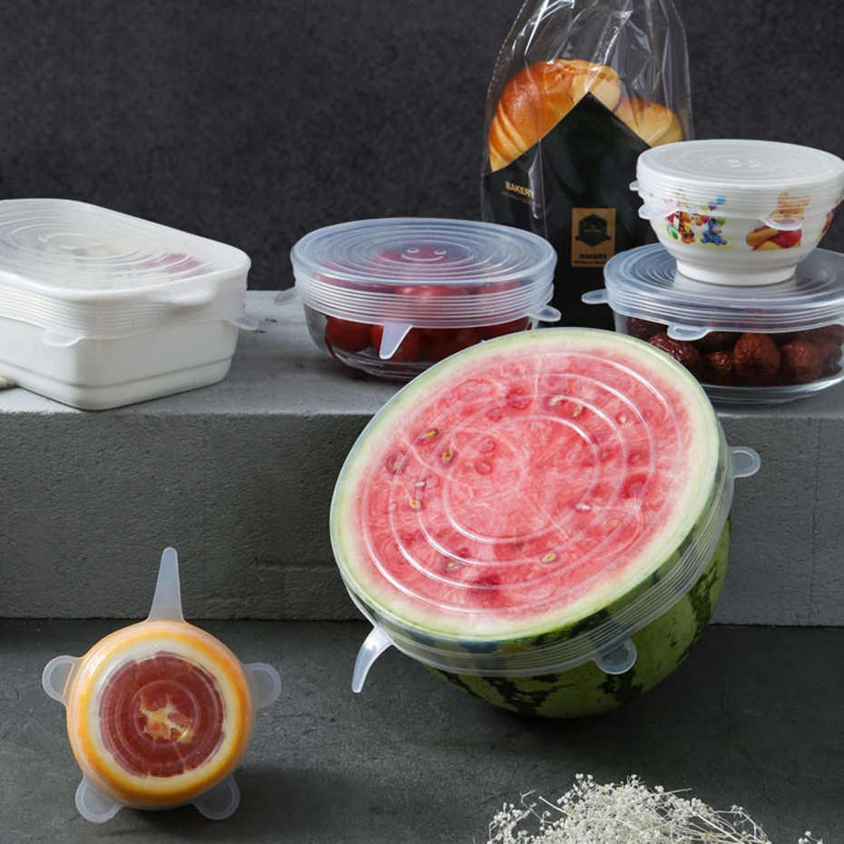 Set 6 miếng màng bọc thực phẩm silicon co giãn, nắp đậy thực phẩm