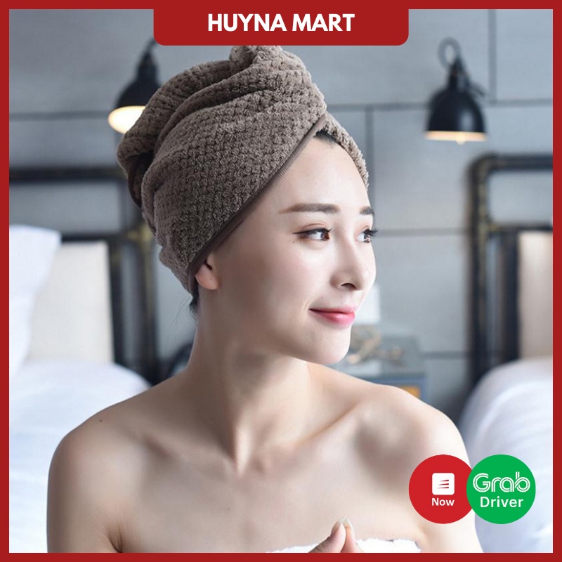 Khăn Quấn Đầu Làm Khô Tóc Mũ Ủ Tóc Mau Khô Vải Lông Cừu Cao Cấp Huyna Mart NT28