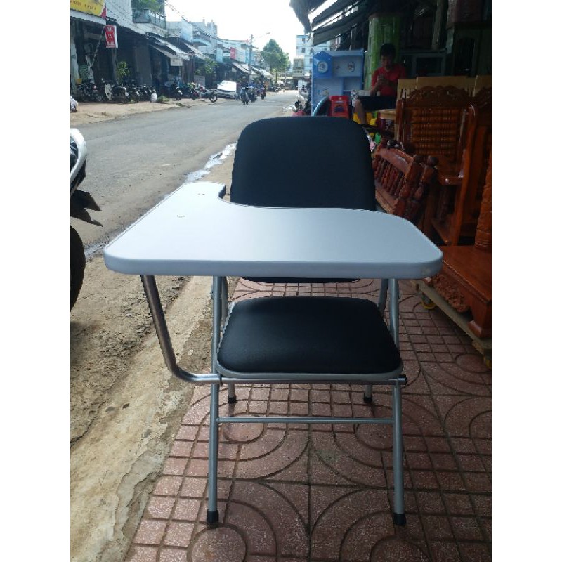 Ghế học sinh chân gấp có bàn viết mặt nhựa, khung thép sơn tĩnh điện, đệm tựa bọc PVC.Kích thước : W545 x D780 x H890 mm