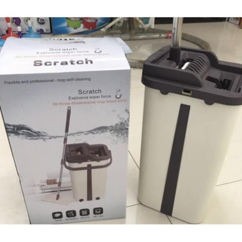 Bộ Cây Lau Nhà 360 Độ Chính Hãng Cao Cấp Mặt Lau Hình Chữ Nhật kèm 2 bông lau