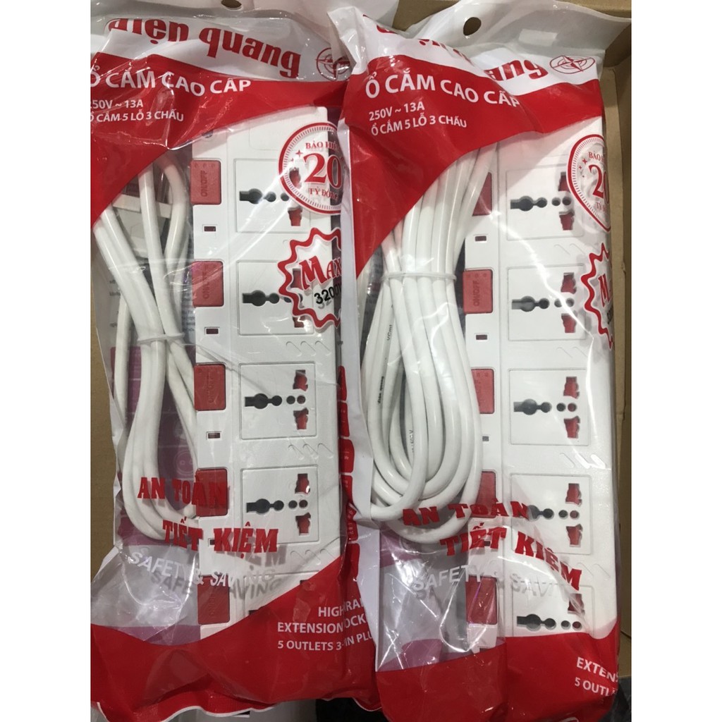 Thiết Bị Điện Gia Dụng > Mạch điện & Phụ tùng > Ổ cắm điện & Dây nối || ⚡️Ổ cắm Điện Quang ĐQ ESK 2W.SM750SL (5 lỗ 3 chấu dây 2 mét , 5 mét màu Trắng Đỏ) ⚡️Còn hàng
