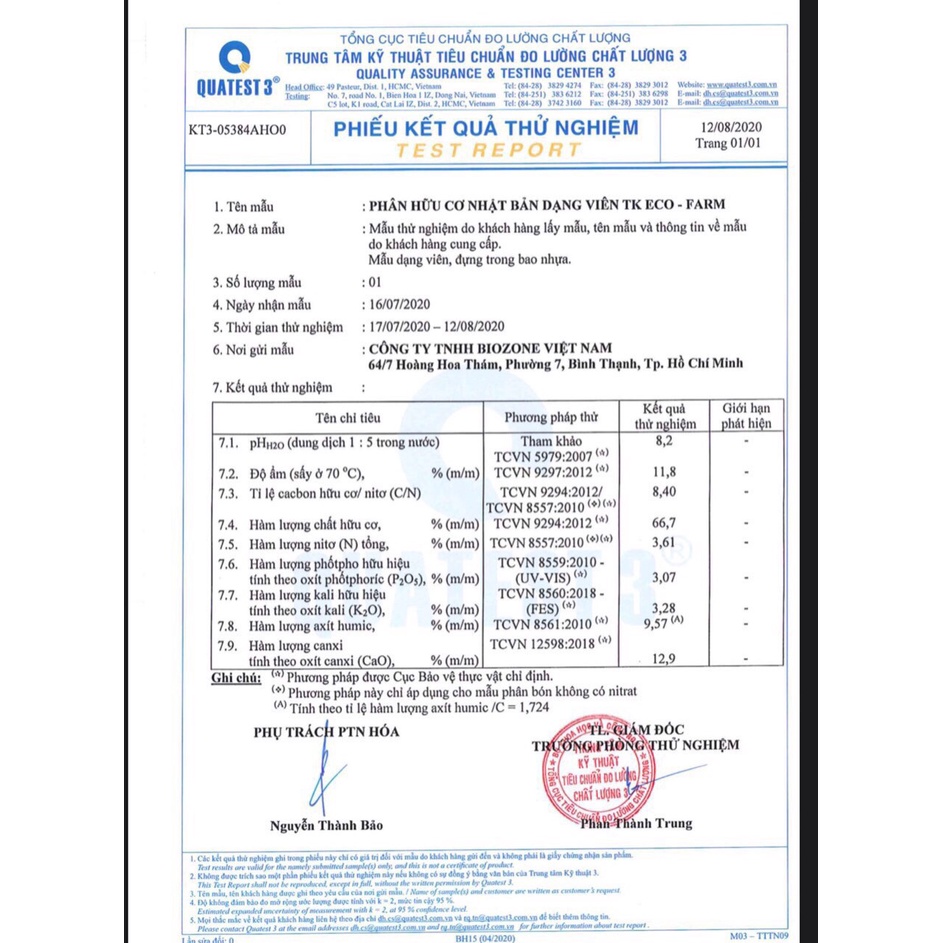 ☘️Thành phần: Đạm (Nts) 3,6%; Lân (P2O5) 3,1%; Kali (K20) 3,3%; Canxi (CaO) 12,9% TE (Mg; Cu; Zn; Bo; Mo...), bổ sung thêm Humic