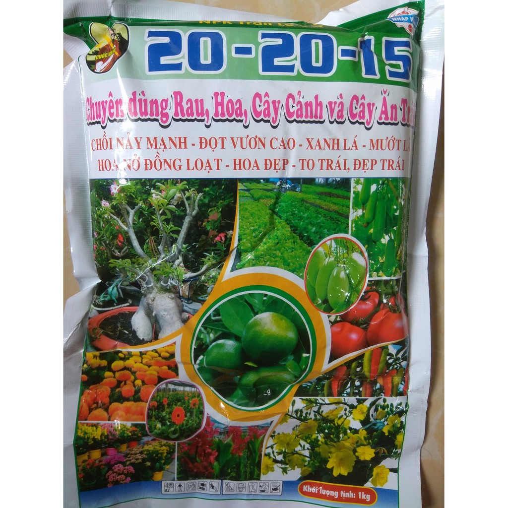 PHÂN BÓN NPK 20-20-15 - GÓI 1 KGCHUYÊN DÙNG CHO RAU, HOA, CÂY CẢNH VÀ CÂY ĂN TRÁI