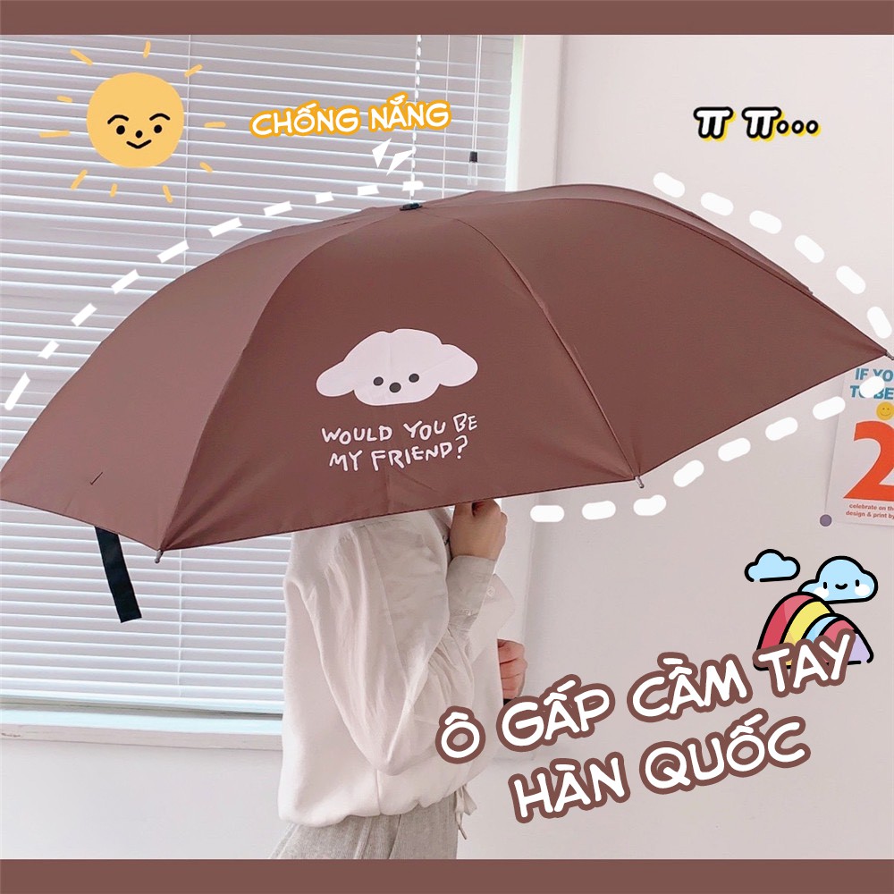 Ô tự động gấp gọn cầm tay dù chống nắng phiên bản Hàn Quốc vinly dễ thương