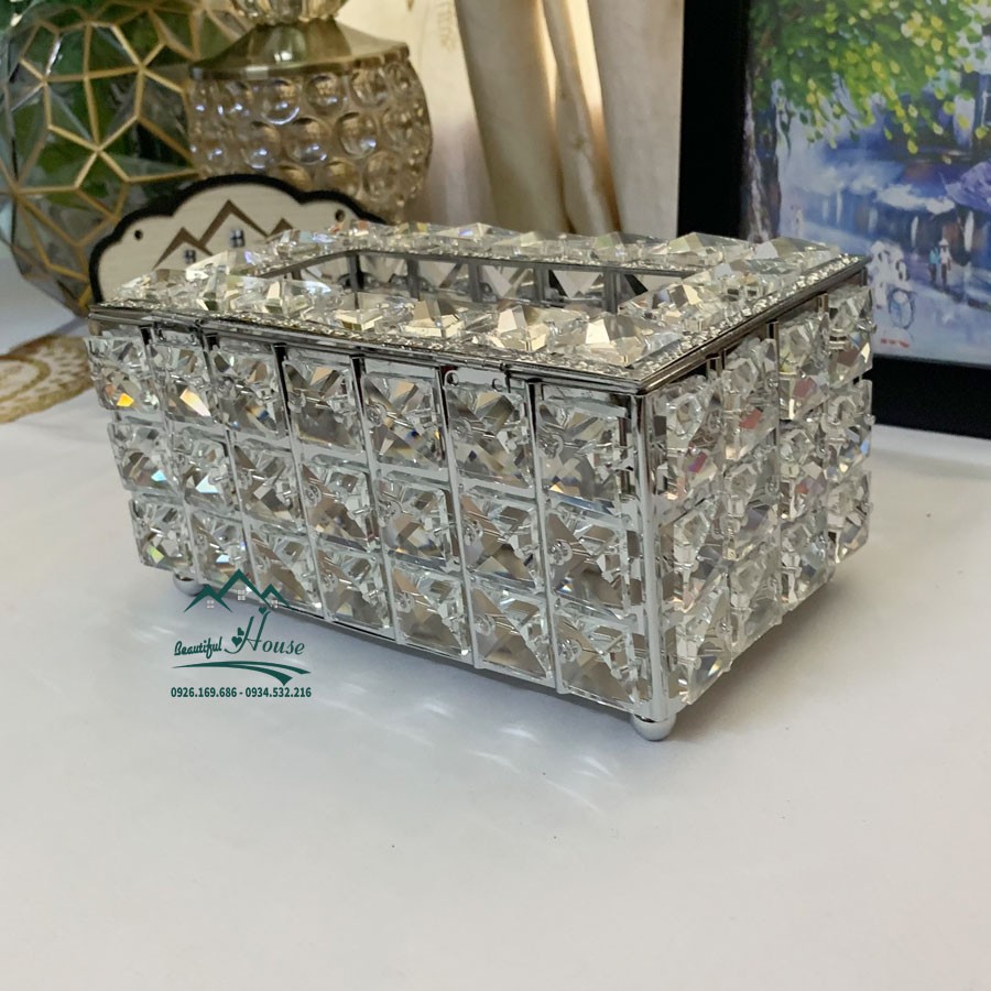 - Hộp được làm bằng chất liệu khung kim loại mạ màu vàng sáng bóng không gỉ, đính các ô đá lấp lánh cực đẹp mắt và sang trọng.