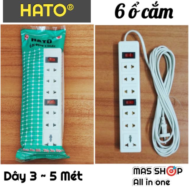 Nhà cửa & Đời sống > Dụng cụ & Thiết bị tiện ích > Dụng cụ > Khác || Ổ cắm điện 6 lỗ cắm HATO dây 5M chịu tải 600WCòn hàng
