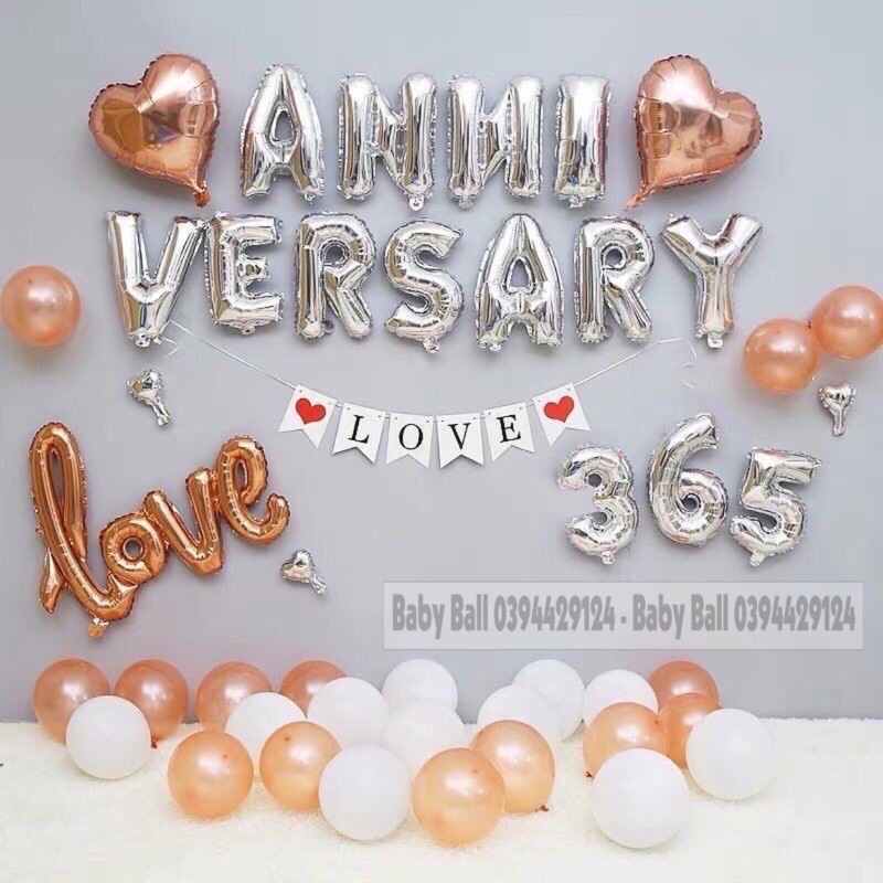 SET BÓNG TRANG TRÍ HAPPY ANNIVERSARYTrang trí ngày kỉ niệm thật đáng nhớ và ý nghĩa chỉ bằng 1 set bóng trang trí đơn giản như thế này. Bạn chỉ mất 30 phút cho việc trang trí.