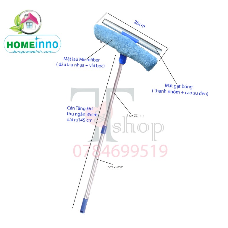 Nhà cửa & Đời sống > Dụng cụ chăm sóc nhà cửa > Chổi || Bộ Cây Lau Kính, Gạt Nước Kiếng Homeinno Cán Dài 1m4 (2 Đầu Rời/Đầu 2 Trong 1)Còn hàng