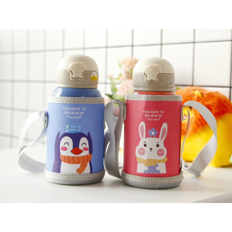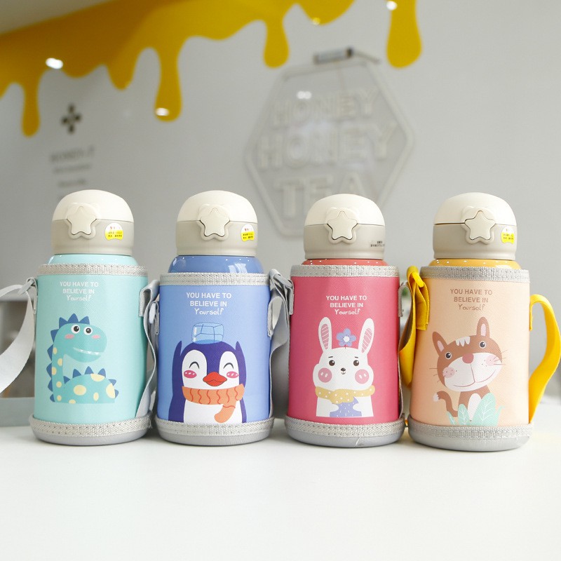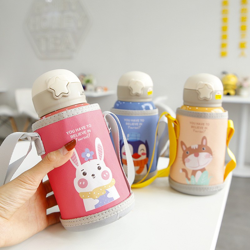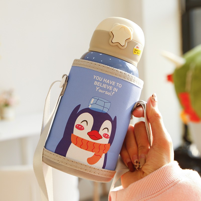 Nhà cửa & Đời sống > Bộ đồ bàn ăn > Bình nước & phụ kiện || Bình nước giữ nhiệt trẻ em có túi đeo và hai nắp tiện dụng 600mlCòn hàng