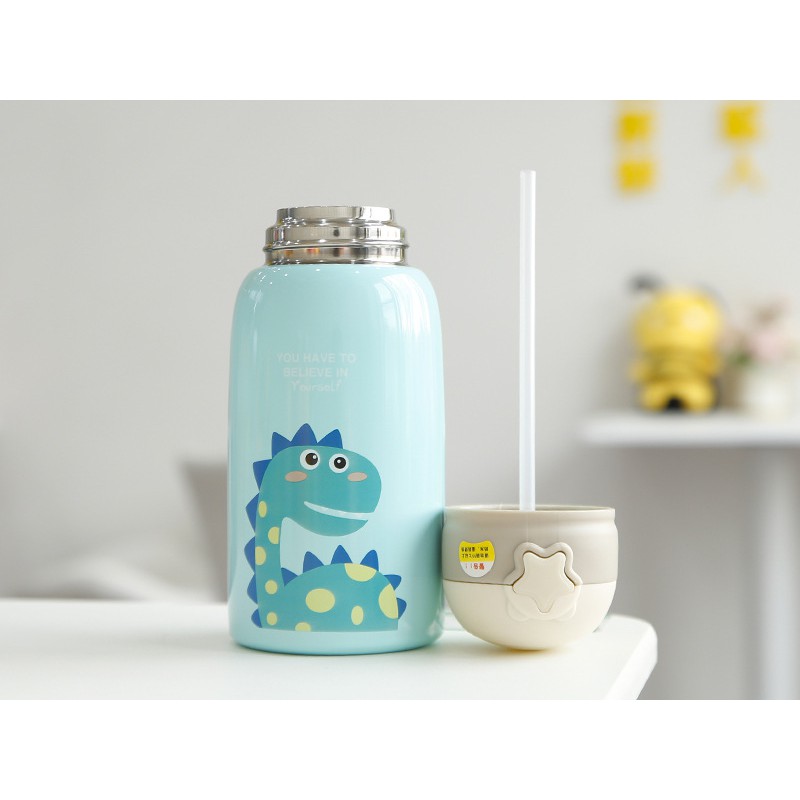 Bình nước giữ nhiệt trẻ em có túi đeo và hai nắp tiện dụng 600ml