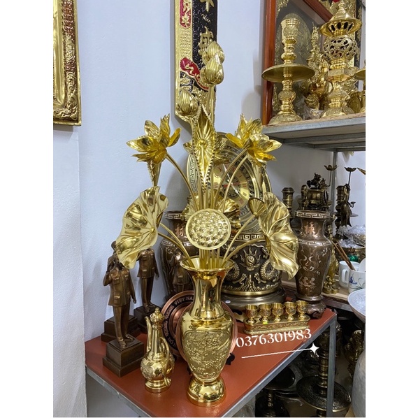 combo gồm có :- 15 cành sen được làm bằng đồng nguyên chất màu vàng ánh kim nặng 1,5kg