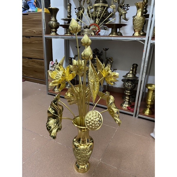 combo hoa sen đồng vàng 15 cành +1 lọ hoa đồng cao 30cm