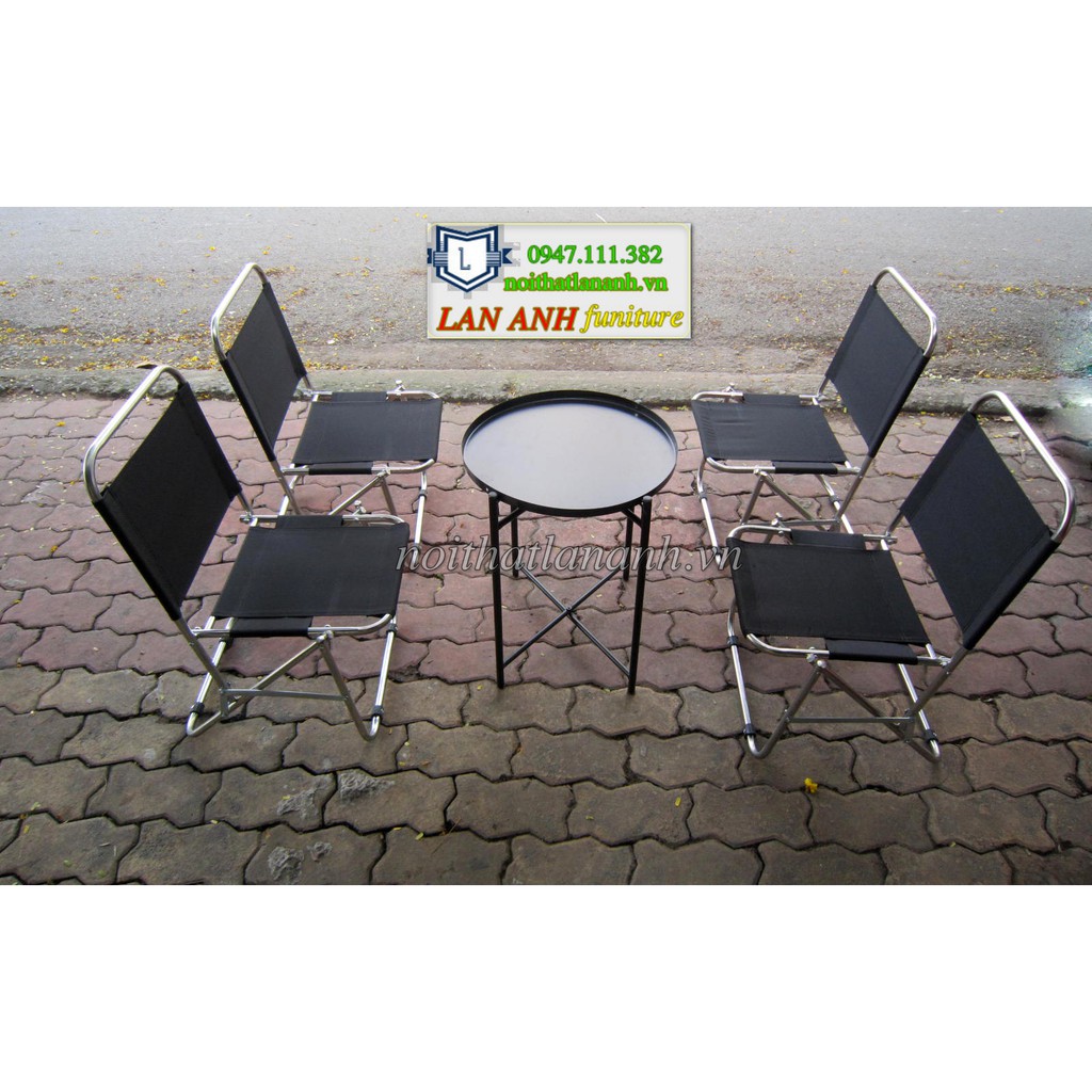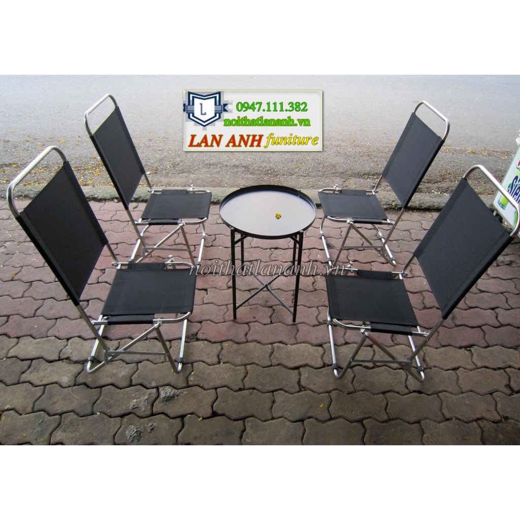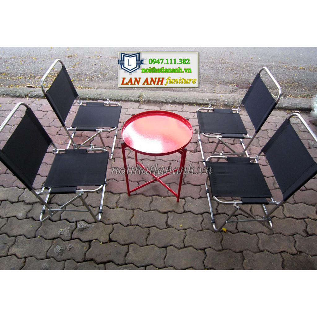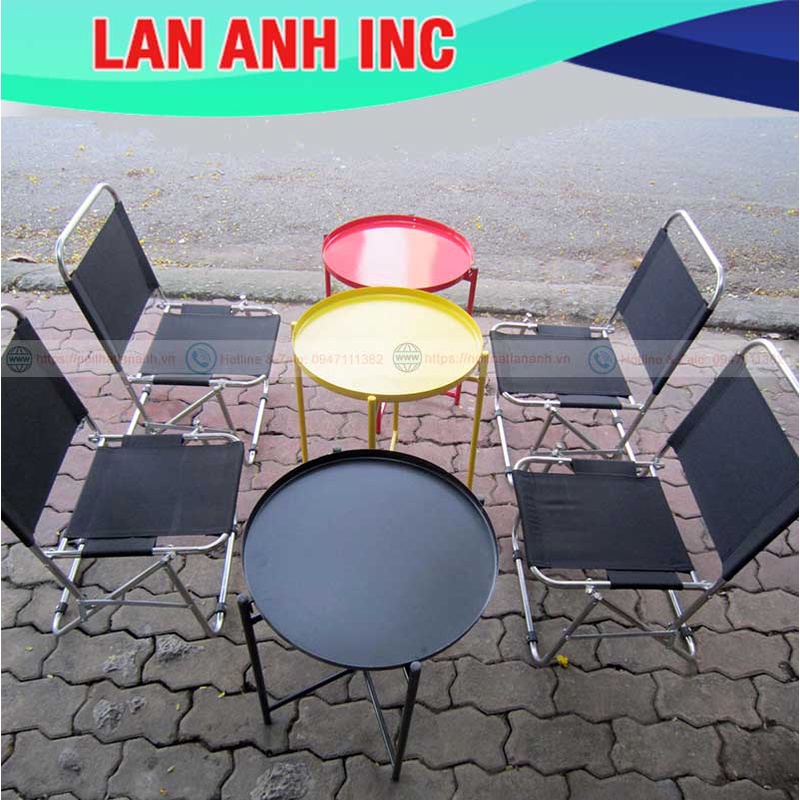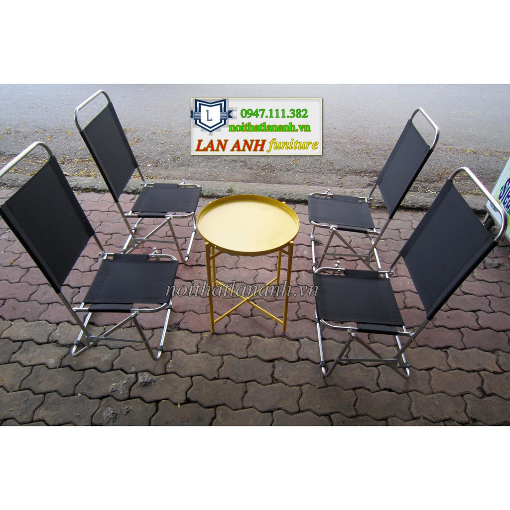 Bộ bàn ghế xếp inox và bàn trà chanhThành phần: 1 bàn trà chanh và 4 ghế xếp inox lưng thấp
