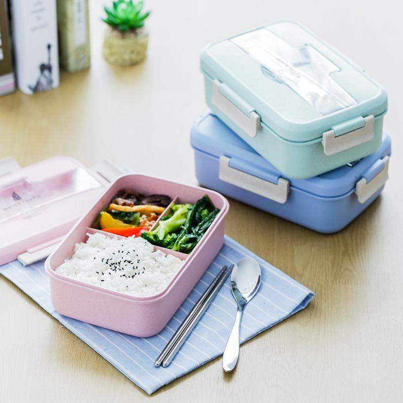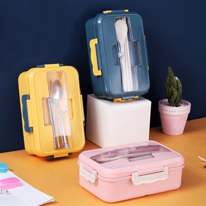 Nhà cửa & Đời sống > Dụng cụ nhà bếp > Khác || Hộp Đựng Cơm Văn Phòng Lúa Mạch 3 Ngăn,giữ nhiệt, Tặng Đũa Và Thìa InoxCòn hàng