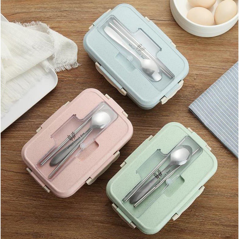 Hộp Đựng Cơm Văn Phòng Lúa Mạch 3 Ngăn,giữ nhiệt, Tặng Đũa Và Thìa Inox