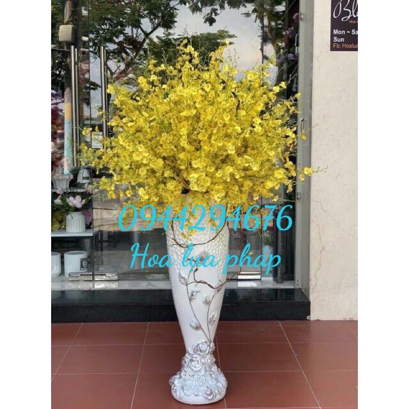 Hoa Lan giả/ Hoa lụa - Hoa Lan Vũ Nữ cành 8 nhánh cao 105cm decor