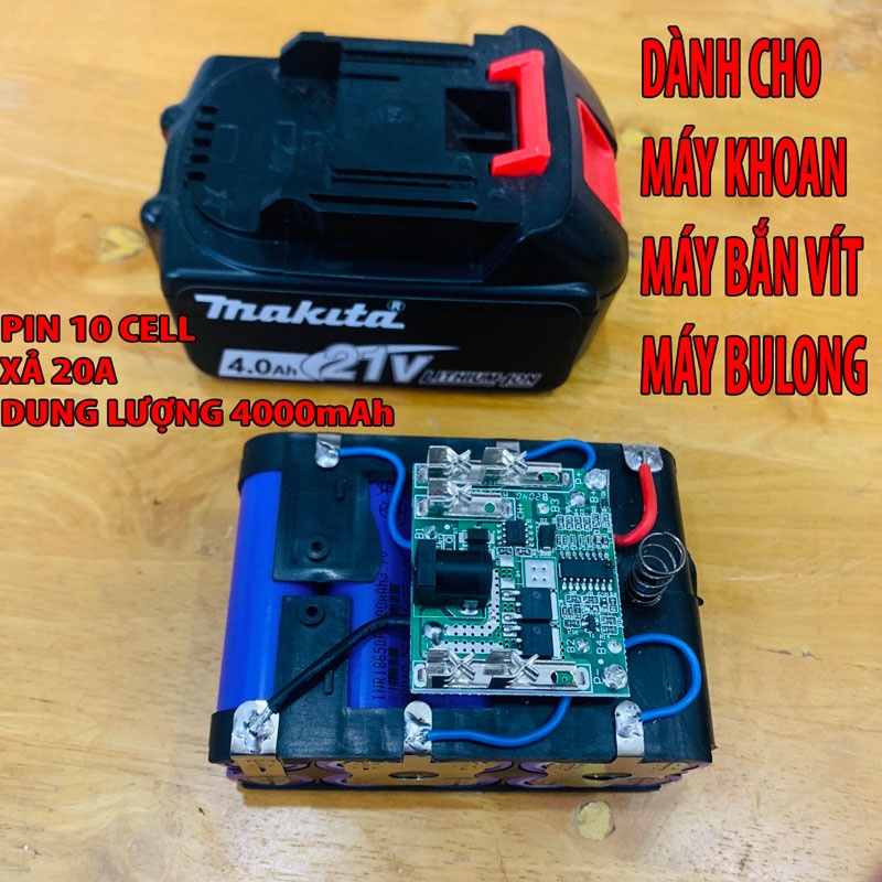 Pin 10 Cell 21V 4000mAh 3000mAh Xả 20A 40A Chân MAKlTA Phổ Thông 40mm