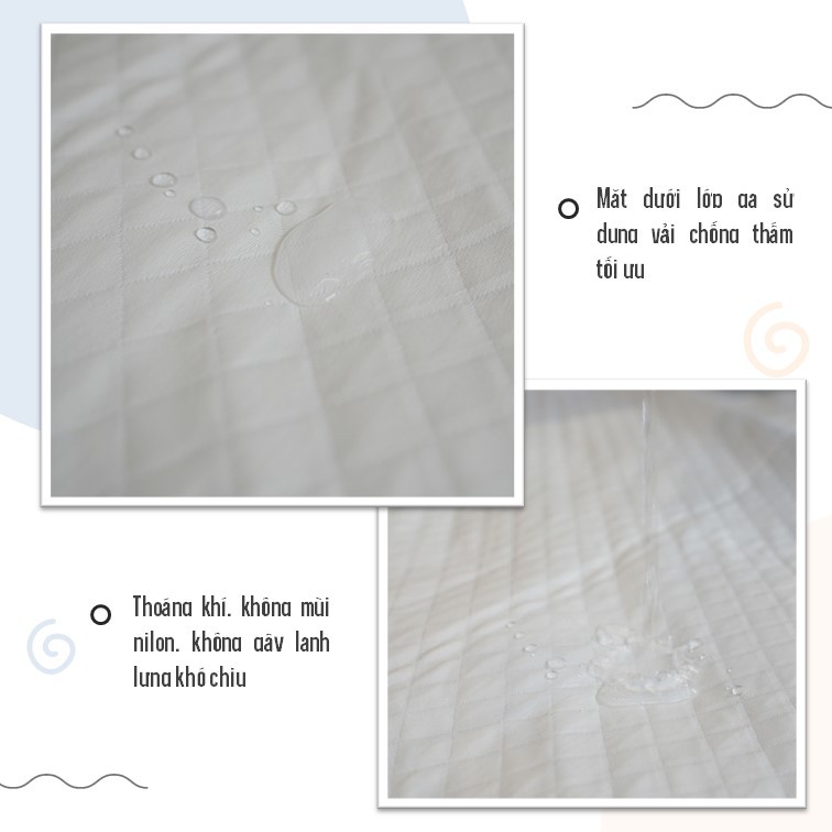 📌 Mặt dưới của ga là lớp vải Polyester chống thấm tối ưu, không lo thấm ướt xuống đệm