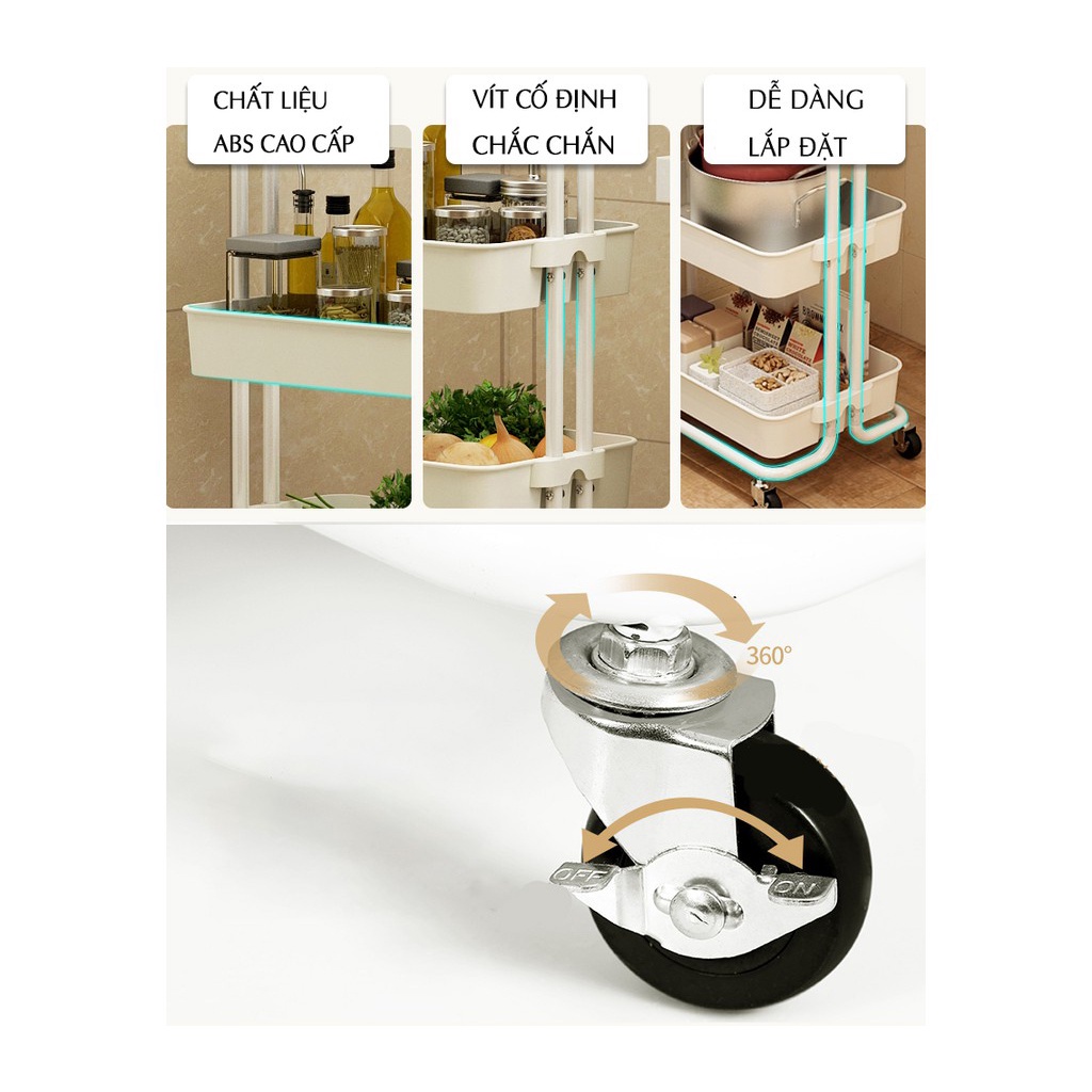 💥Kệ được thiết kế đẹp mắt, có bánh xe đi chuyển và khóa bánh khi không muốn di chuyển hay bị xê dịch.💥Gía được làm bằng nhựa ABS chất lượng và chịu lực cao phù hợp với nhiều mục đich như trang trí nhà cửa , đựng đồ nhà bếp hay các thẩm mỹ spa .v..v