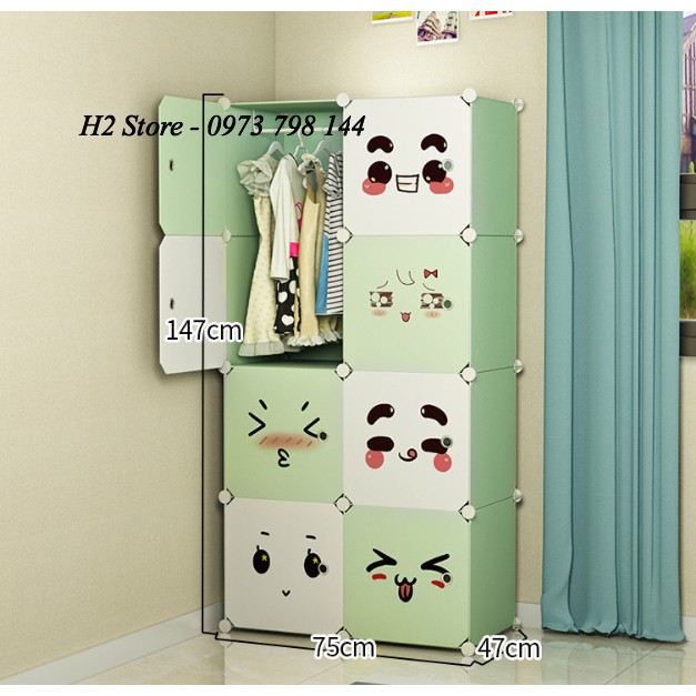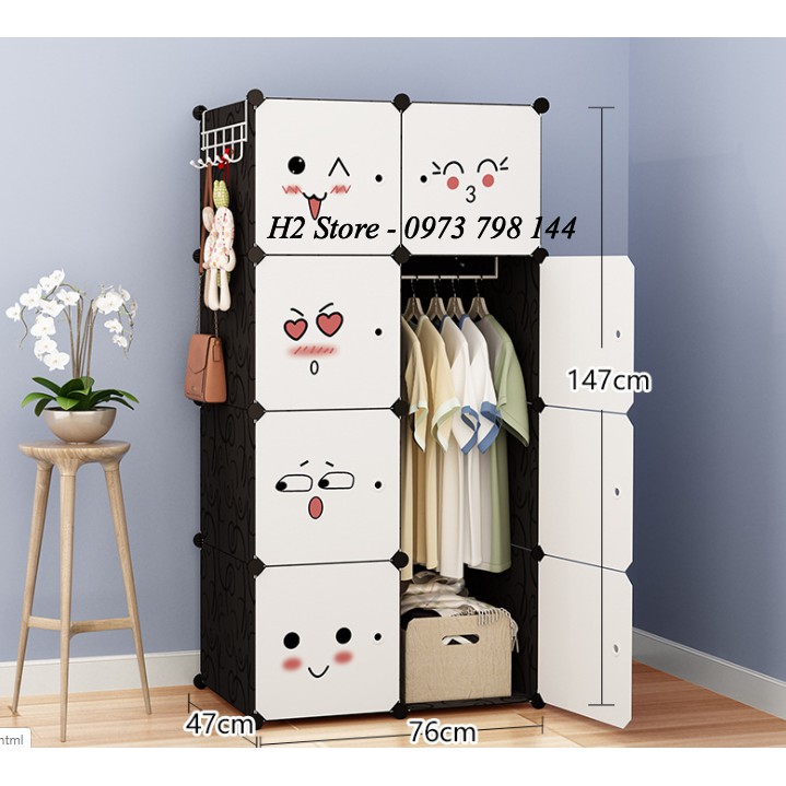 TỦ NHỰA GHÉP 8 Ô CỬA MẶT CƯỜI TREO ĐỒ ĐA NĂNG THÔNG MINH sâu 47cm