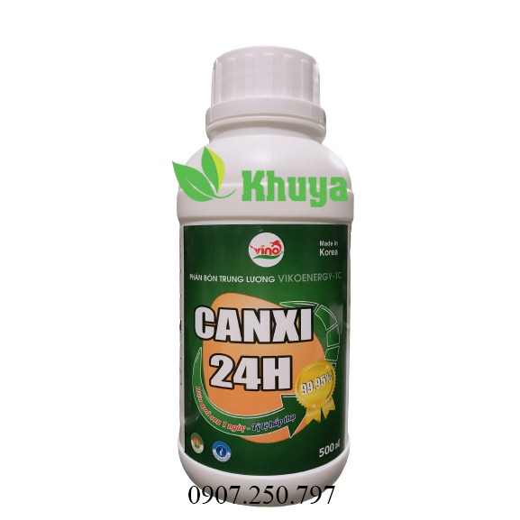Phân bón trung lượng Canxi 24h 500ml Vino- Canxi 24h là sản phẩm được nhập khẩu từ Hàn Quốc chiết xuất từ trứng gà giúp cây trồng hấp thu 99,95% Canxi, hiệu quả sau 24h