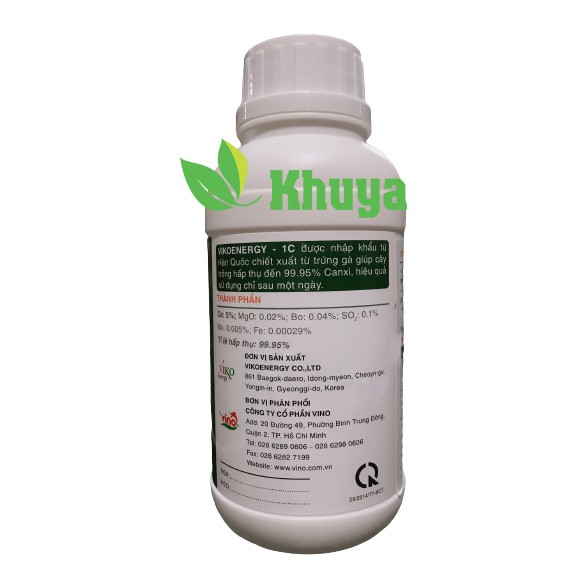 * Thành phần: Ca: 5%, MgO: 0,02%; Bo: 0,04%, SO2: 0,01%, Mo: 0,005%, Fe: 0,00029%