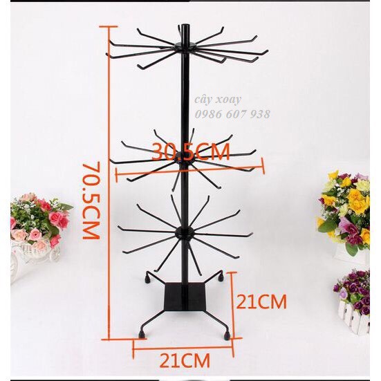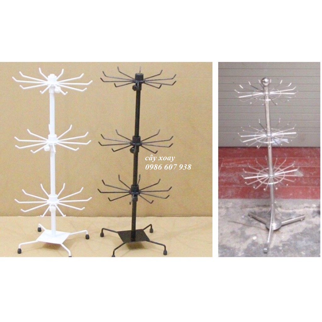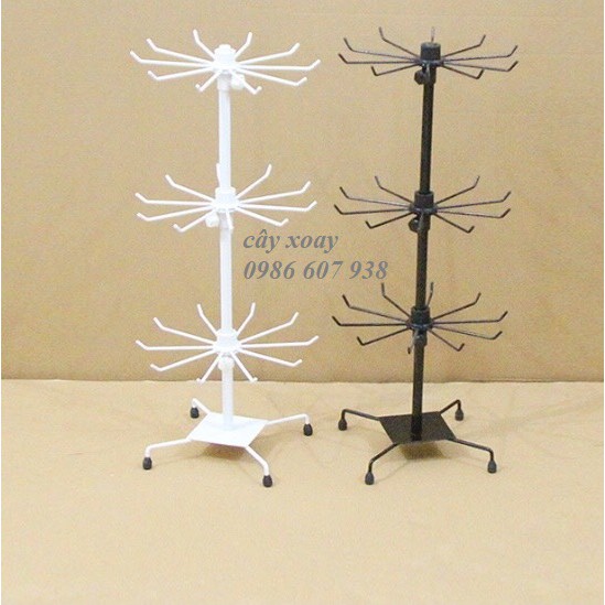 Cây xoay sắt sơn tĩnh điện có màu đen. trắng chỉ có 1 loại 3 tầng, tổng chiều cao 70cm, khoảng cách giữa các tầng có thể chỉnh tùy ý (hàng nhập khẩu)