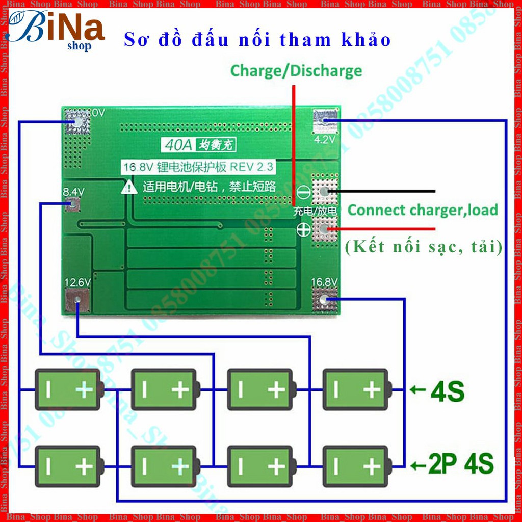 Mạch sạc bảo vệ pin 4S 40A cân bằng / tiêu chuẩnĐiện áp sạc : 16.8V - 18V