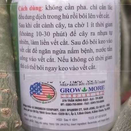 *** Cách dùng: sau khi cắt cành cây, ta chờ 1 ít thời gian (khoảng 10-30 phút) để cây ra nhựa tự nhiên, làm liền vết cắt. Sau đó bôi keo vào vết cắt để ngăn ngừa nấm bệnh, nước tấn công vào vết cắt. Nếu không có thời gian thì có thể bôi ngay keo vào vết cắt.