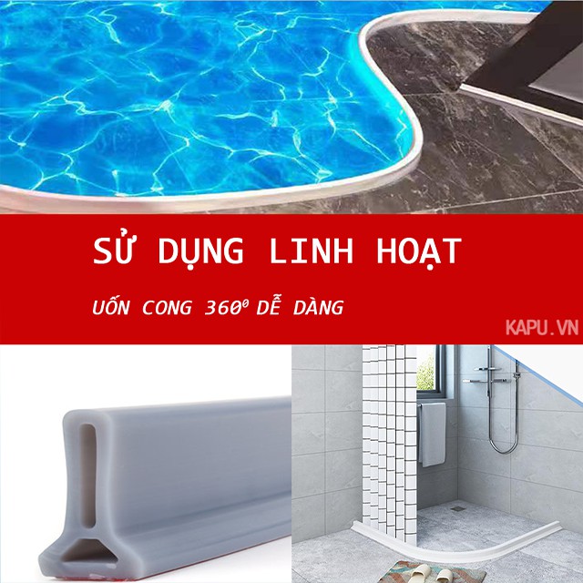 Dải Silicon Chặn Nước Tiện Lợi Dùng Cho Nhà Tắm, Nhà Vệ Sinh, Chỗ Rửa Tay, Máy Giặt