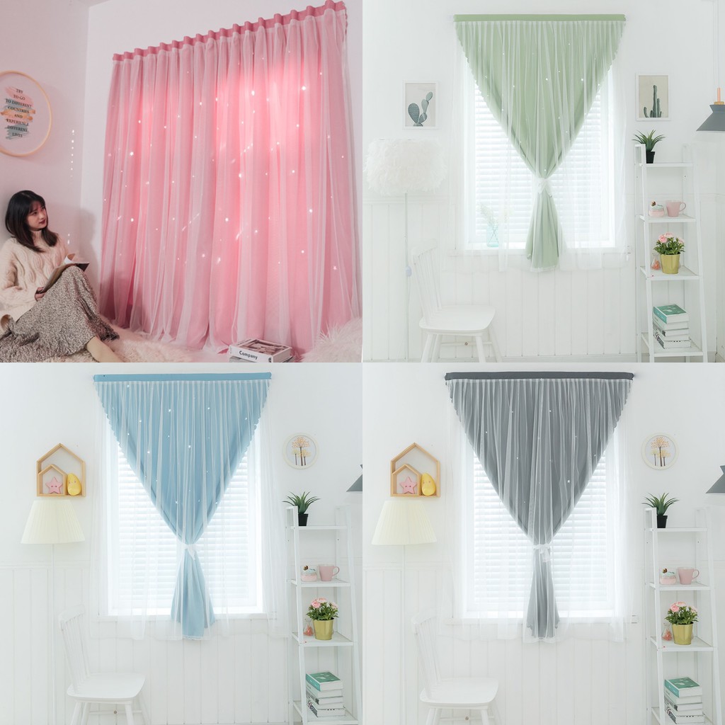 Nhà cửa & Đời sống > Trang trí nhà cửa > Rèm cửa, màn che || [Sẵn]Rèm cửa sổ dán tường 2 lớp hàng đẹpCòn hàng