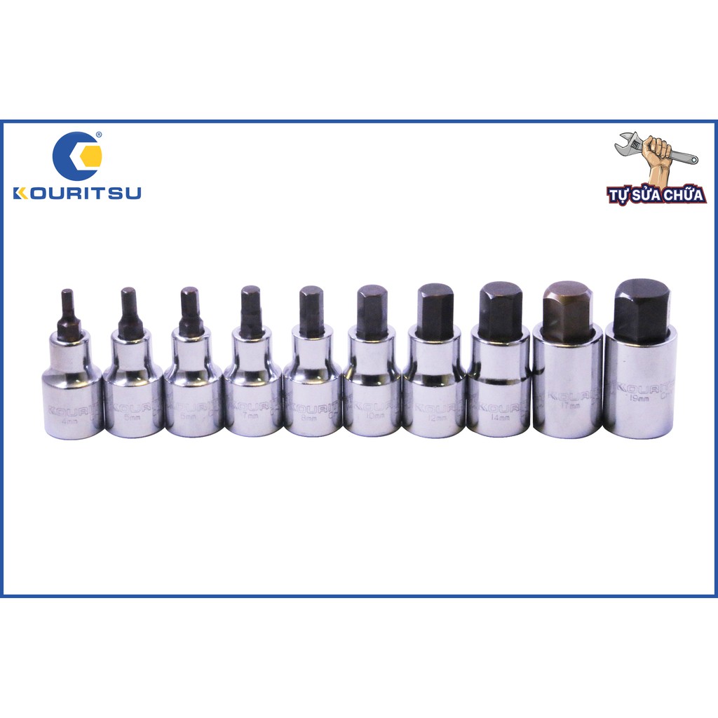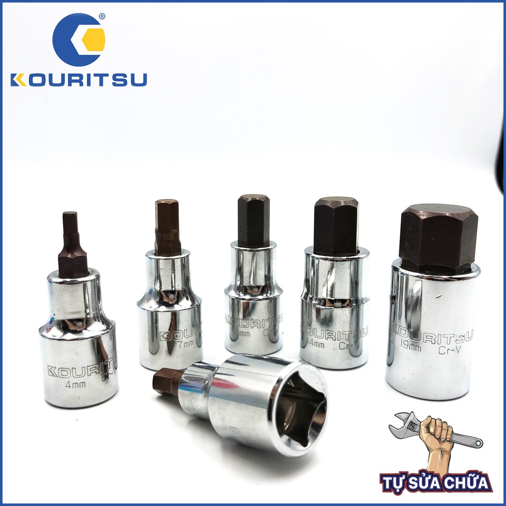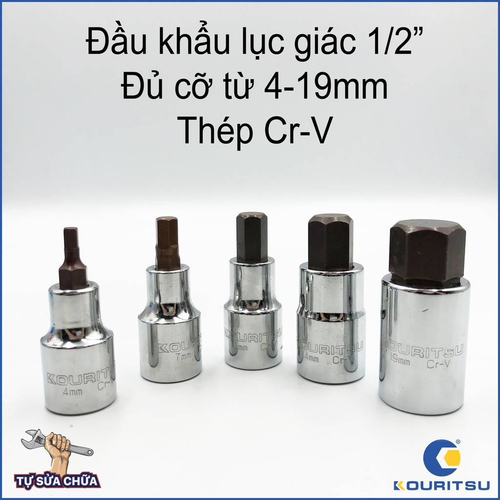 Nhà cửa & Đời sống > Dụng cụ & Thiết bị tiện ích > Dụng cụ > Khác || Khẩu 1/2 inch đầu lục giác Kouritsu thép CR-V chống gỉ đủ cỡ từ 4-19mmCòn hàng