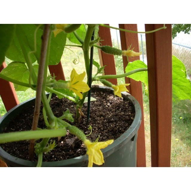 Trồng dưa chuột Baby đơn giản tại nhà Dưa chuột là loài rau ăn trái thường được chọn trồng tại nhà do tính chất dễ trồng và dễ chăm sóc. Khi chúng ta chọn trồng loại rau nào đó, ngoài mục đích là thu hái rau , chắc hẳn có thêm mục đích là ngắm nhìn và tập cho trẻ con nhà mình làm quen với thiên nhiên. Dưa chuột baby là loại rau quả đáp ứng tốt mục đích này. Với tính chất dễ trồng, thời gian thu hoạch ngắn ( 40- 45 ngày), chỉ 30 ngày sau khi trồng, những quả dưa baby đã bắt đầu xuất hiện, dưa chuột baby rất sai trái, những nụ trái baby xoắn xít nhau xen trong nách lá, trông rất thích mắt. 1. Gieo ươm hạt giống Chúng ta có thể gieo thẳng hạt giống hoặc ngâm ủ nếu các bạn muốn kiểm soát tốt hạt giống của mình - Ngâm hạt trong nước ấm khoảng 38º C – 45º C ( 2 sôi + 3 lạnh) trong 4-5 giờ - Vớt hạt giống ra và để ráo sau đó ủ trong bông gòn ẩm ( hoặc vải mềm) khoảng 36 – 48 giờ, các hạt sẽ nhú mầm. Ta cần chuẩn bị ly ươm hạt , xơ dừa đã xử lý và đất dinh dưỡng. Xơ dừa xử lý và đất dinh dưỡng - Trộn xơ dừa xử lý và đất dinh dưỡng theo tỉ lệ 2:1 - Cho giá thể ươm vào 2/3 ly ươm - Dùng bình phun sương tưới ẩm giá thể trong ly sau đó cho hạt giống vào và phủ 1 lớp giá thể trên mặt hạt giống - Sau 3 ngày ươm các lá mầm xuất hiện ( Với hạt giống đã qua ngâm ủ) 2. Nuôi dưỡng cây con - Sau 1 tuần cây con trong ly ươm đã cứng cáp , rễ cây ăn lan hết trong ly ươm là đến lúc chúng ta đem chúng ra túi bầu hoặc chậu Ø 16 các bạn nhé… - Hai tuần sau khi cho ra túi bầu cây dưa đã phát triển mạnh cả về bộ rễ cũng như thân ,lá, chúng ta chuẩn bị chậu hoặc túi bầu kích thước tối thiểu là 35 x 45 cho giai đoạn sinh trưởng và ra hoa kết trái. - Đất trồng để dùng cho giai đoạn này cần loại đất hỗn hợp tơi xốp, giàu dinh dưỡng có bán trên thị trường. Nếu các bạn dùng đất của Trongraulamvuon thì sử dụng đất sạch (loại túi 10kg). 3. Chăm sóc dưa leo baby 3.1 Bón phân, tưới nước - Cây dưa leo baby khỏe mạnh sẽ phát triển tốt và ít bị sâu bệnh,muốn cây khỏe ngay từ giai đoạn túi bầu ta nên bón phân hữu cơ hoai mục hoặc đất dinh dưỡng ( phân trùn quế) một lớp mỏng 2-3 cm trên mặt túi bầu hoặc chậu. Có thể dùng thêm phân bón 30-10-10 phun lên lá, 7-10 ngày /lần trong 3 tuần đầu của giai đoạn cây con, hoặc phân NPK 16-16-8 phun trực tiếp lên lá . Hạt giống Dưa leo Baby chùm SIÊU QUẢ( gói 10 Hạt)#hạt