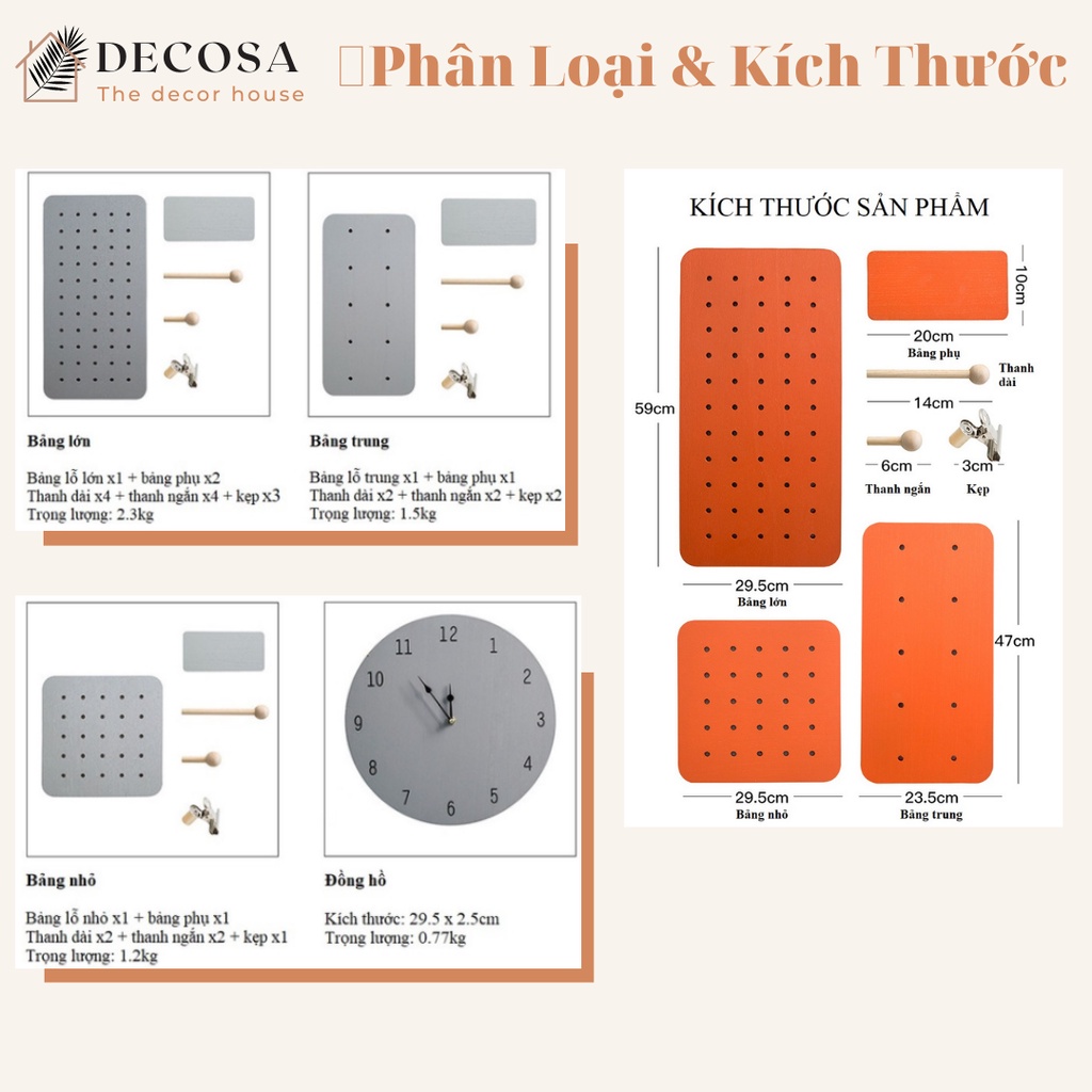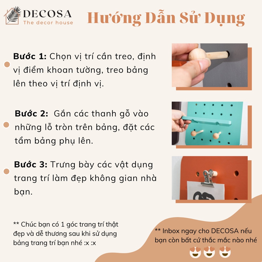 Nhà cửa & Đời sống > Trang trí nhà cửa > Khác || Bảng gỗ Pegboard treo tường nhiều màu sắc kích thước DECOSACòn hàng