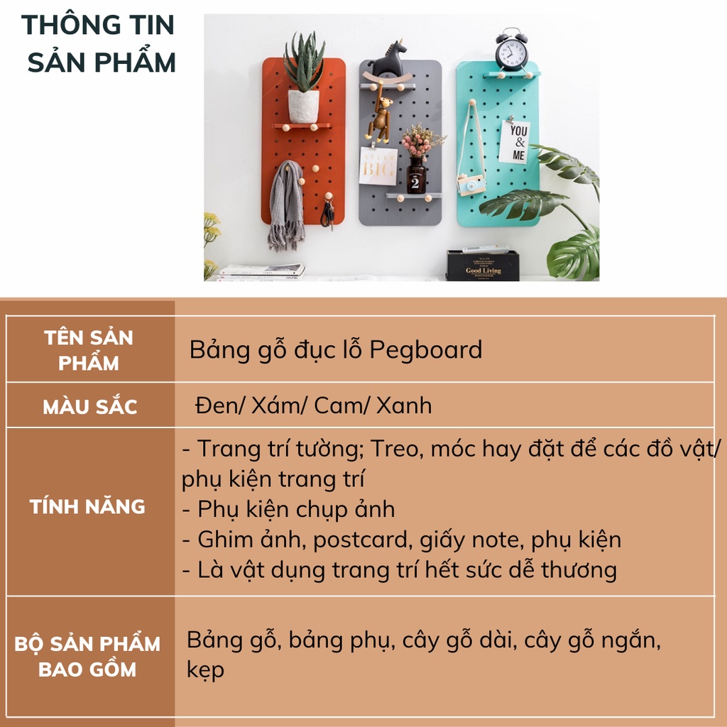 THÔNG TIN SẢN PHẨMBảng gỗ Pegboard treo tường nhiều màu sắc kích thước DECOSA