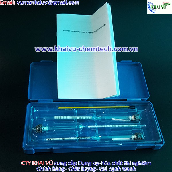 Công ty KHAI VŨ chuyên cung cấp Bộ đo nồng độ cồn gồm 3 cồn kế và nhiệt kế.