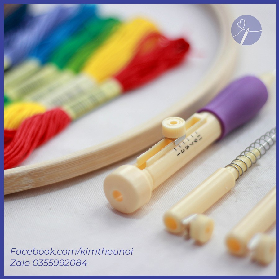 - Kim Thêu Nổi Punch Needle hay còn gọi là kim thêu xù, kim thêu thụt với cách sử dụng đơn giản, nhanh chóng và hiệu quả