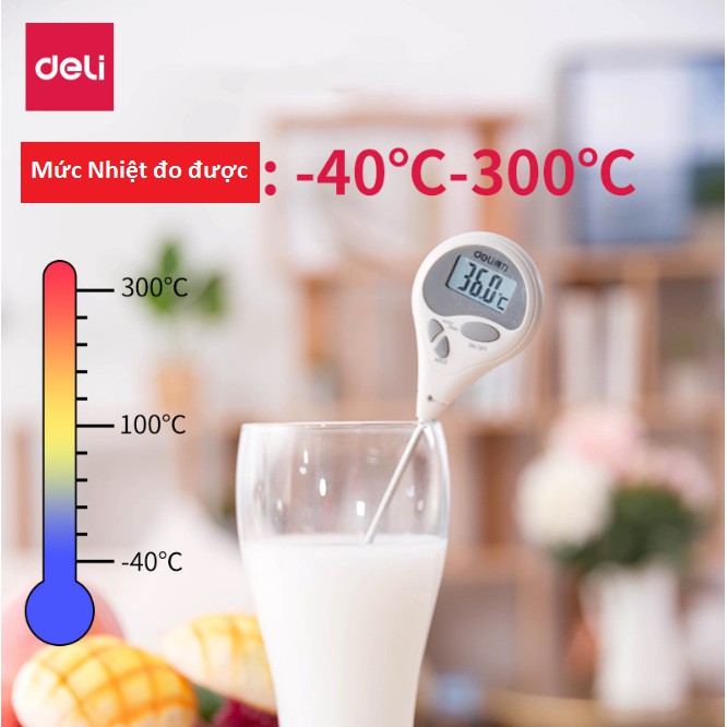Nhà cửa & Đời sống > Dụng cụ nhà bếp > Khác || Nhiệt kế điện tử chính hãng Deli đo nhiệt độ sữa, nước, thực phẩm, chất lỏngCòn hàng