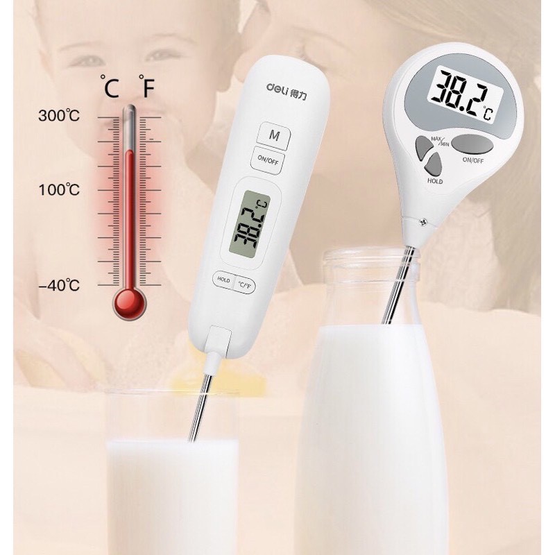 Nhiệt kế điện tử chính hãng Deli đo nhiệt độ sữa, nước, thực phẩm, chất lỏng