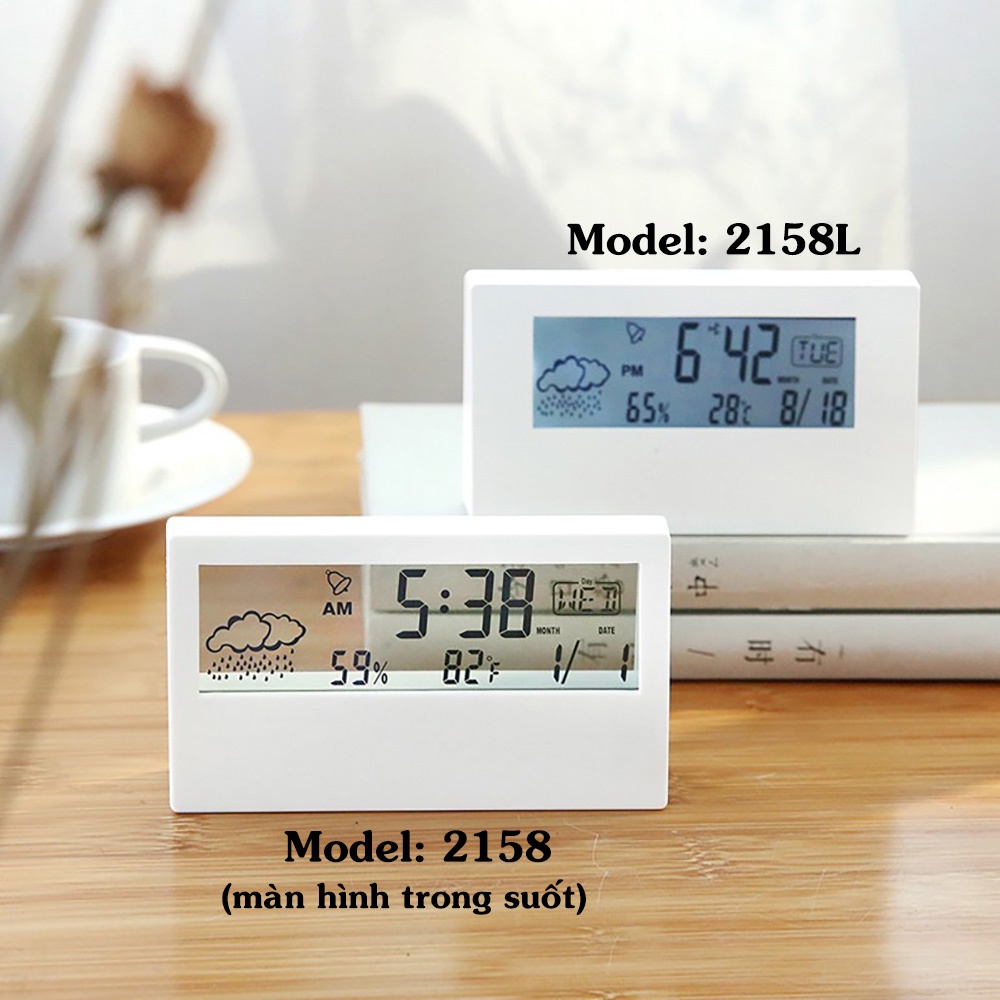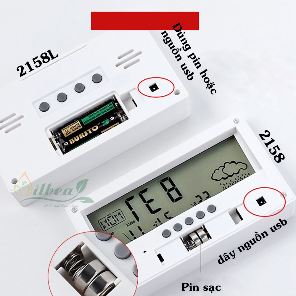 - 2158L: màn hình LCD không xuyên thấu, sử dụng 2 viên pin AAA hoặc dây nguồn 5V/1A, có trang bị đèn LED