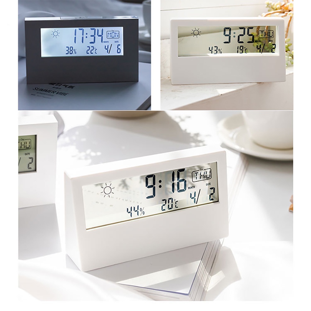 - Model: Đồng hồ báo thức để bàn màn hình LCD