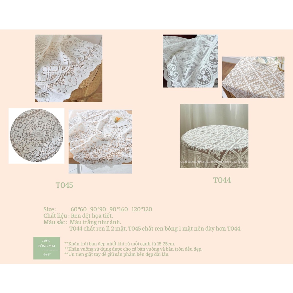 Khăn trải bàn ren họa tiết phong cách vintageKhăn được sử dụng với nhiều công dụng : khăn trải bàn trà, trải bàn làm việc, trải sofa decor phòng, thảm picnic, phụ kiện chụp ảnh.