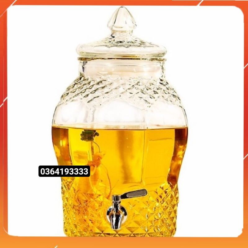 Bình Ngâm Rượu Thủy Tinh Có Vòi 15 Lít Hình Dáng Kim Cương