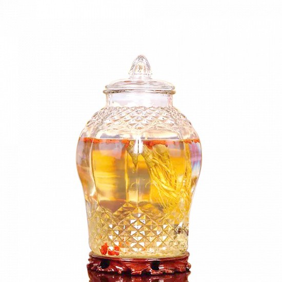- Đây là một trong những Bình thủy tinh ngâm rượu có kiểu dáng đẹp, lạ, độc đáo nhất trong bộ sưu tập. Có thể vừa để ngâm rượu quý, vừa để trang trí nội thất gia chủ.