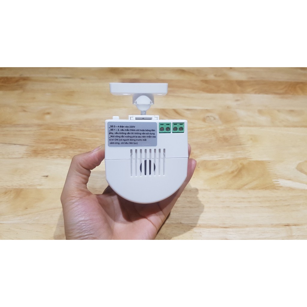 + Thời gian báo động khi phát hiện người từ 3 giây tới 5 phút (có thể điều chỉnh thời gian hú còi và sáng đèn).